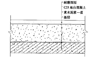 地面的基本构造一般自下而上,分为:底板混凝土-素水泥浆一道-地台混泥土-3mm 厚耐磨材料层(其基本结构示意如图1)