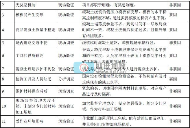 分别统计出:地坪的平整度和水平度、外观质量、表面的完整度是影响质量的关键因素;