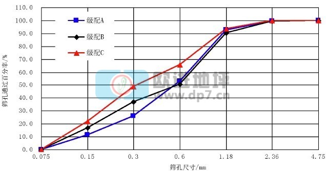 为研究砂的颗粒级配对材料性能的影响,我们设计了三组级配,如表 2 所示。