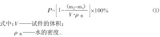 将试件在水中浸泡24 h 后,在水中测试试件的质量m1,然后将试件风干24 h,测其质量m2,根据式(1)计算混凝土的孔隙率Ρ。