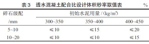 对CJJ/T 135—2009《透水水泥混凝土路面技术规程》中配合比设计方法进行完善,引入“骨料粒径与级配”和“体积砂率”两个设计参数,配合比设计步骤如下: